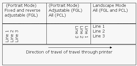 Due to a variety of legacy issues and driver limitations, an adjustable FGL printer operating in portrait mode requires a reversed orientation <rte> in order to properly format the ticket. Reverse will rotate the ticket portrait mode layout 180 degrees. This will only work for portrait layouts in conjunction with the Boca printer driver. It is intended to make the Boca printer driver compatible with the HP LaserJet IIP printer driver. Please note the manner in which the printer formats the ticket in the various scenarios shown below.